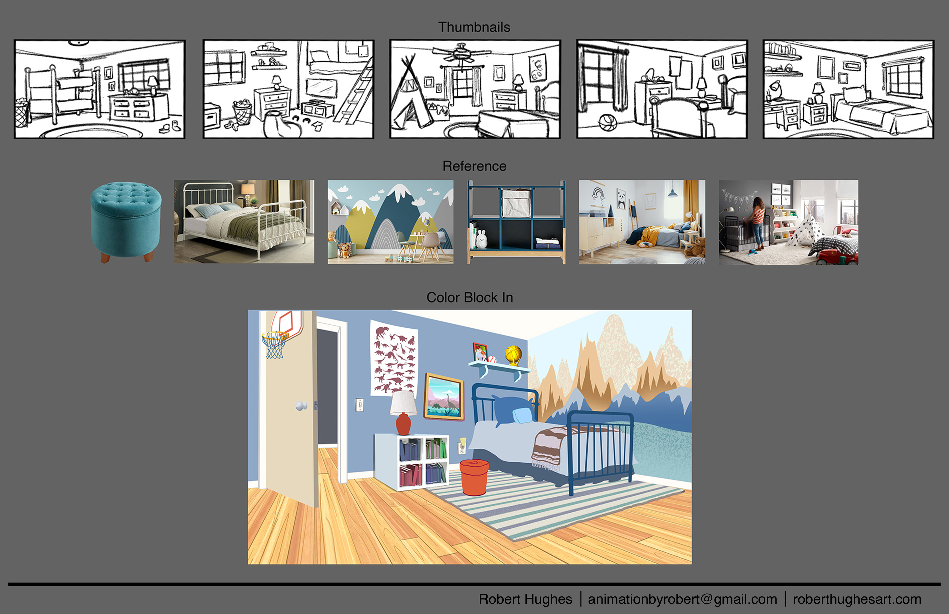 I designed and painted all of the following images from thumbnail sketches through final paint